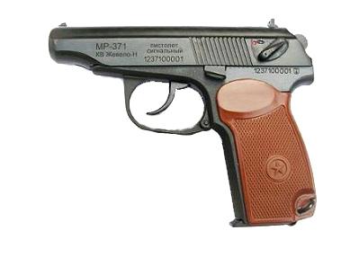 Пистолет сигнальный МР-371 изготовлен на базе легендарного пистолета ПМ и представляет собой его полную копию, включая действие всех его частей и механизмов. Для имитации выстрела используются капсюли-воспламенители «Жевело», вставляемые в имитаторы патронов.